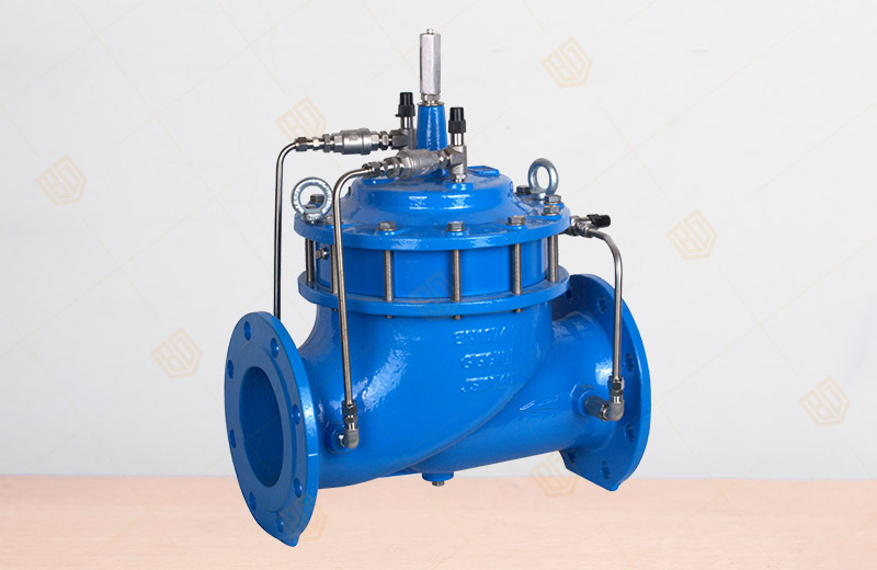 百鋼閥門集團生產(chǎn)銷售的700X水泵控制閥由主閥、電磁導閥、針閥、球閥、單向閥、行程開關、微形過濾器和壓力表組成水力控制接管系統(tǒng)。水泵需停止工作時,先由進口壓使主閥關閉90%后,水泵停止運轉。剩余10%由回水關閉。可防止水錘現(xiàn)象發(fā)生。