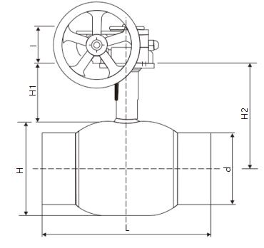 Q367F固定蝸輪式焊接球閥產(chǎn)品尺寸: PN16/PN20/CLASS150